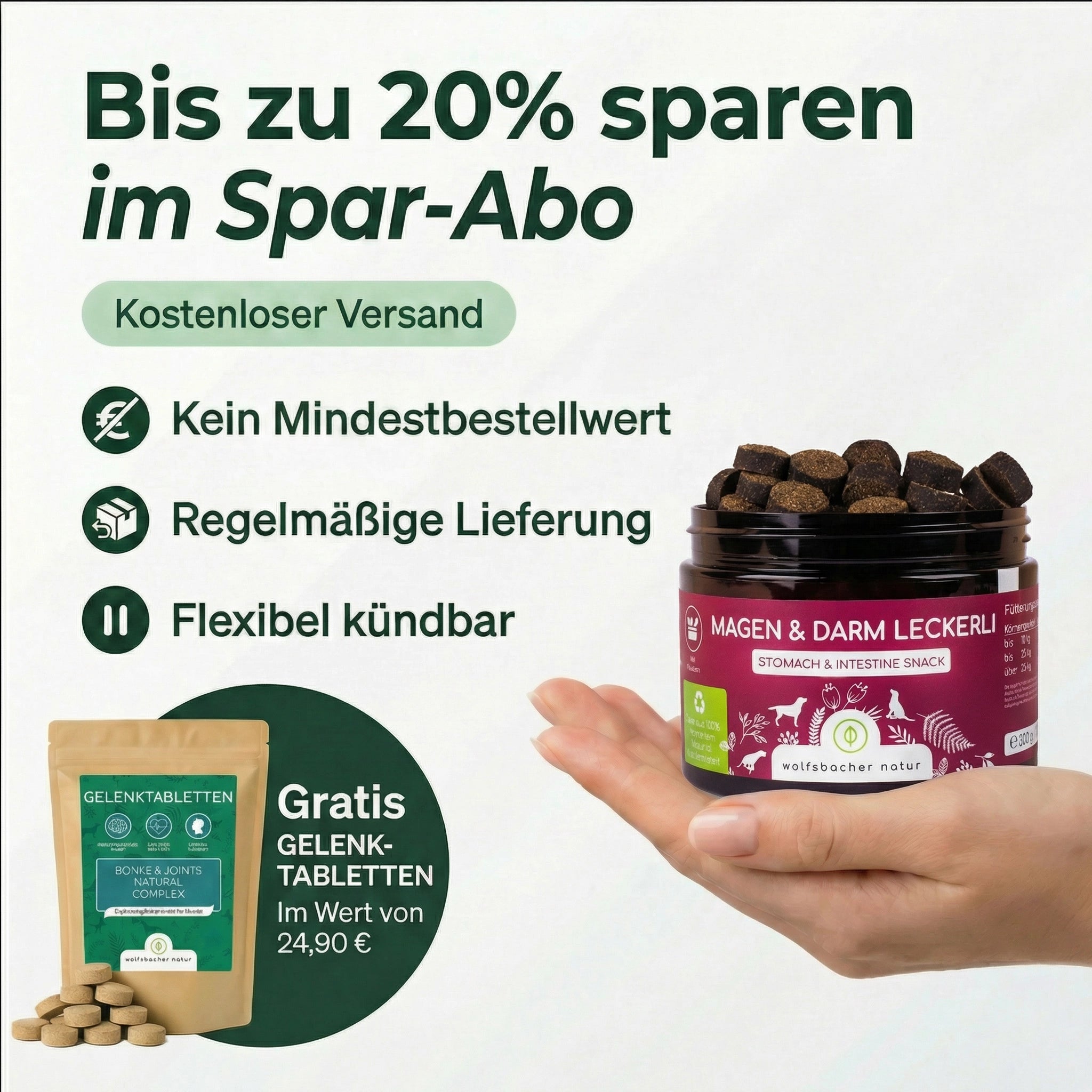 Dann sind unsere Magen & Darm Snacks eine abgestimmte Ergänzung für Hunde mit sensibler Verdauung.