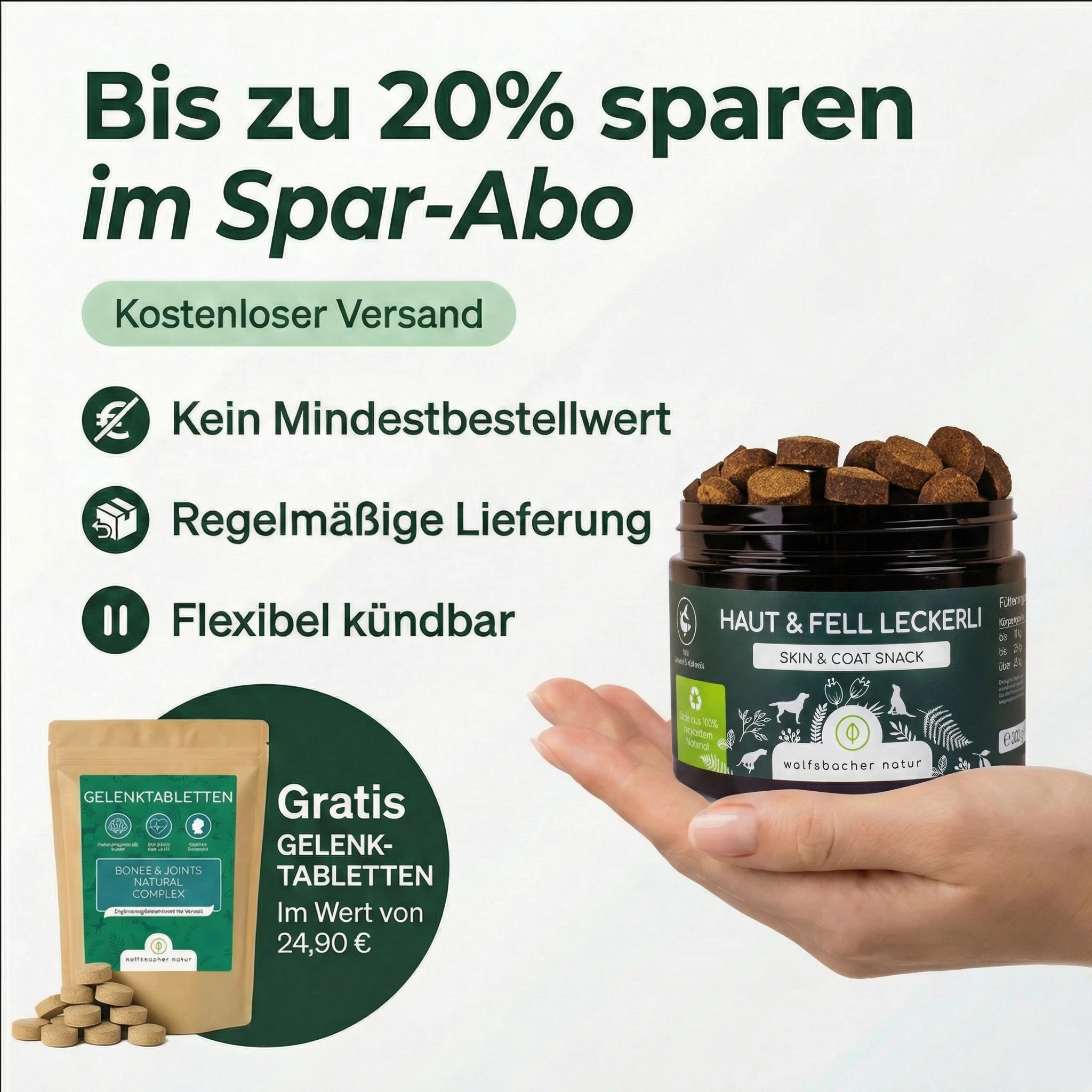Die Snacks eignen sich als tägliche Ergänzung zur regulären Fütterung und lassen sich unkompliziert in den Alltag integrieren.