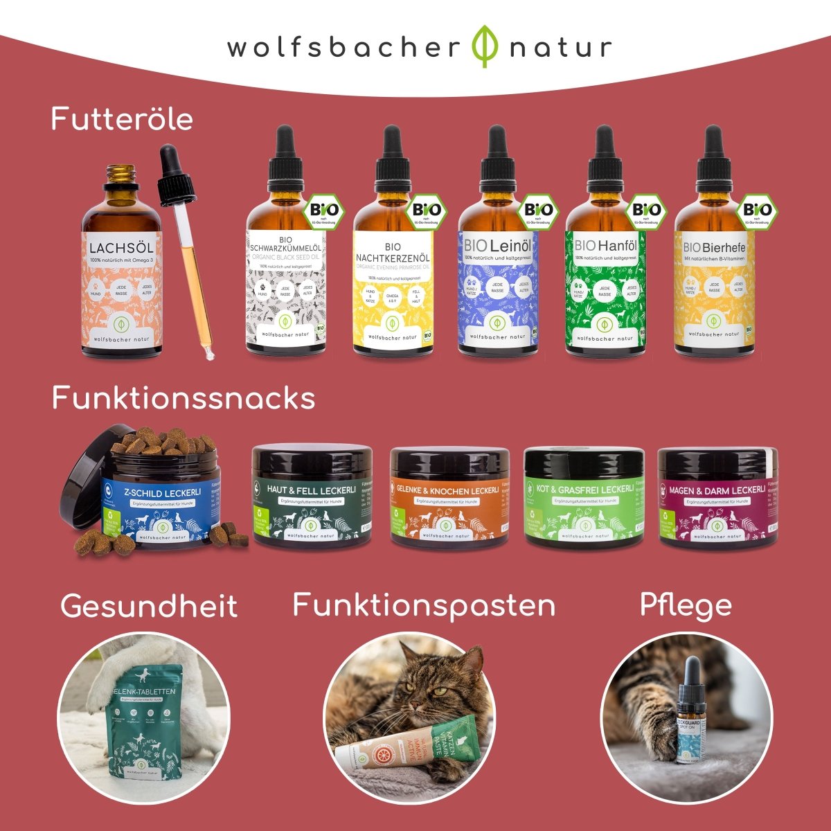 Besonders wertvoll bei Wachstumsphasen, trächtigen Hündinnen, Senioren oder bei langfristiger Rohfütterung ohne Innereien oder Knochen.