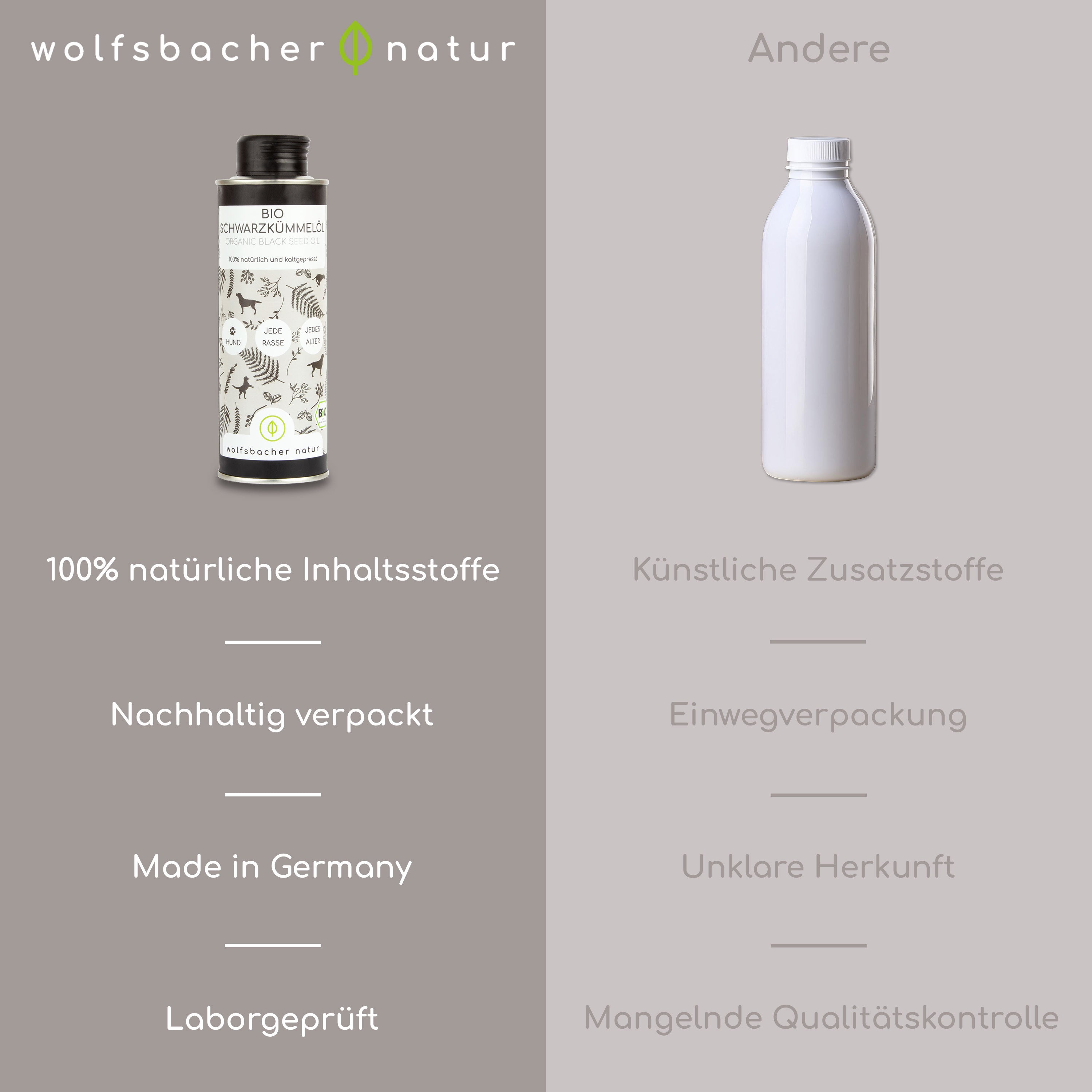 Dann ist unser Bio-Schwarzkümmelöl eine bewährte Möglichkeit, die tägliche Fütterung deines Hundes sinnvoll zu ergänzen.
